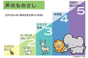 声のものさし 大きさ12345シートもう「うるさい!」「静かに!」と叱らなくて済む掲示物。