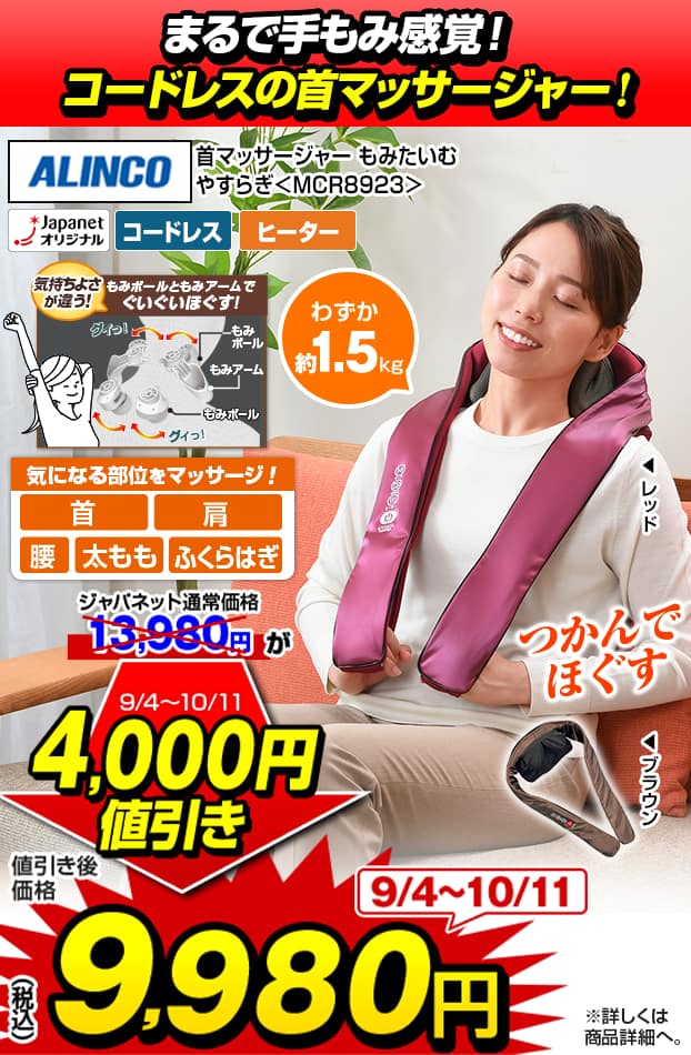 楽天市場 楽天ランキング1位 アルインコ コードレス マッサージャー 温熱マッサージ機 電動マッサージ器 医療機認証 電動マッサージ器 小型 ガンクッション ネックマッサージャー もみたいむ マッサージ機 腰痛 揉み 肩揉み フットマッサージ機 首肩 MCR8922N。