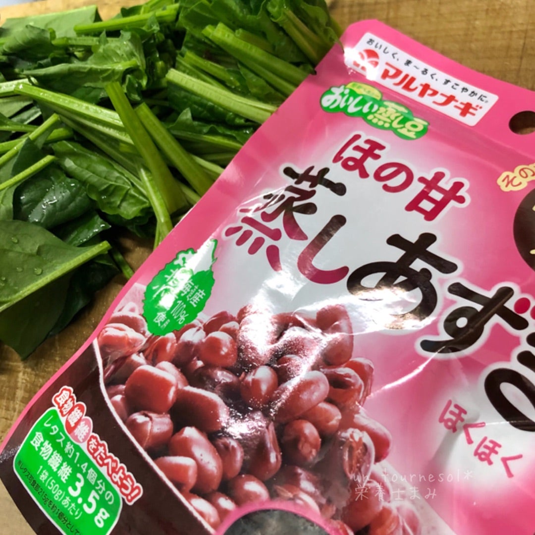女性には嬉しい栄養効果満点◎ 便秘解消!蒸し小豆とほうれん草のサラダ♡レシピ栄養士から学ぶ✩⃛知識とレシピ⋆✩⃛*ೃ.⋆。