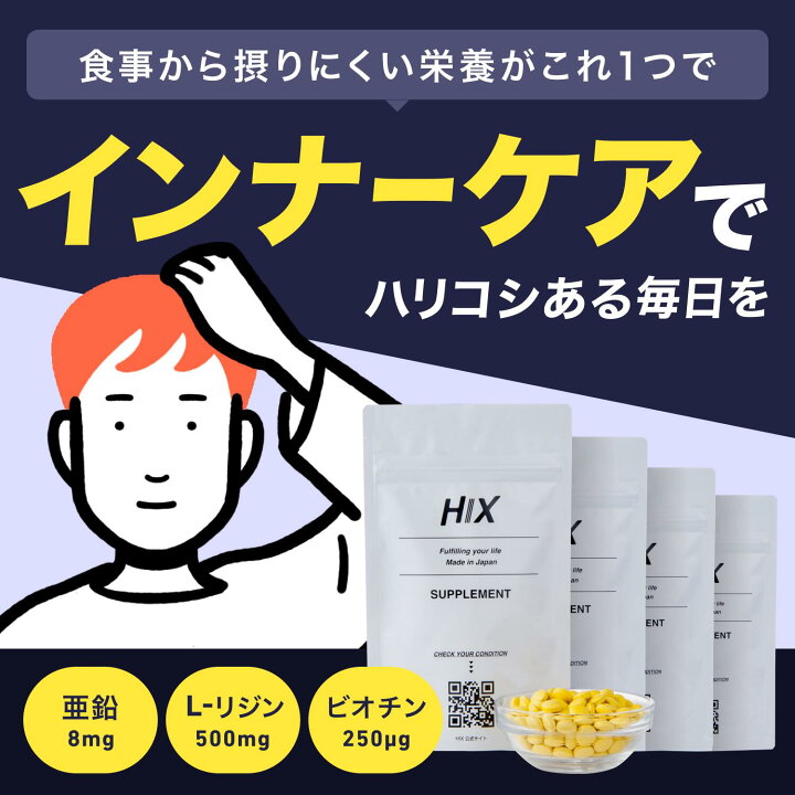 楽天市場 HIX ヒックス サプリメント ビオチン 薄毛 リジン 発毛 育毛 亜鉛 髪の毛 ミノキシジル 女性 健康 元気 タンパク質 抜け毛インナーケア 必須アミノ酸 美容 栄養 補助 補給 保湿 乾燥 ビタミンC 葉酸 代謝 促進 aga 頭皮 スカルプ ケア。
