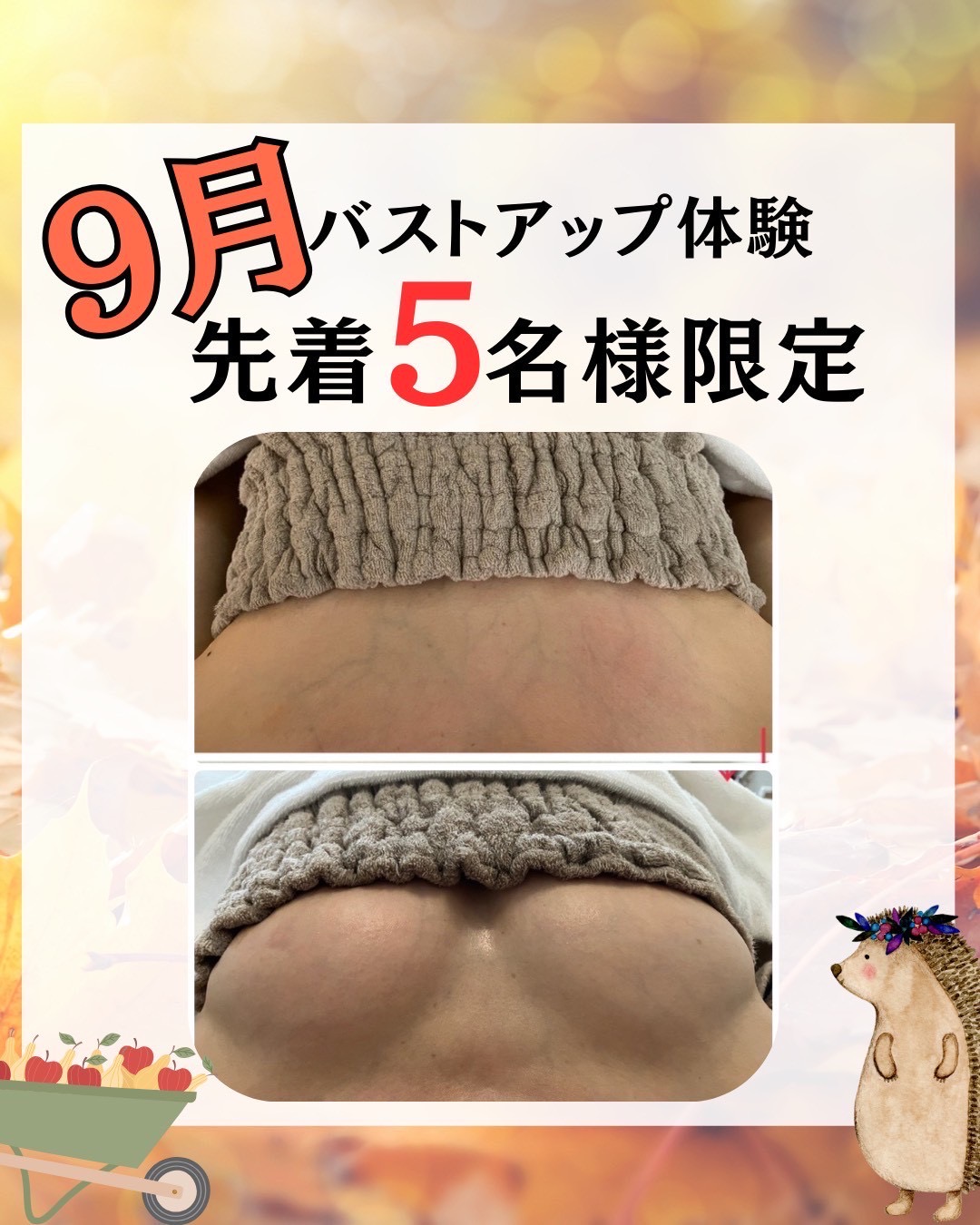9月バストアップ体験先着5名様限定募集! - 静岡県富士市にある痩身、バストアップ専門エステサロンSALON DU CHOCO。