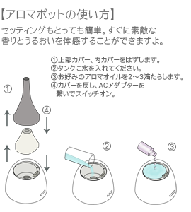 アロマポットの簡単な初歩や基本的な使い方・利用方法・仕様方法・やり方初めての利用方法や使用方法・初心者でも簡単 使い方ラボ。