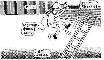 事故再現 はしご「3.はしごが縮んで、挟み込みや転落」。