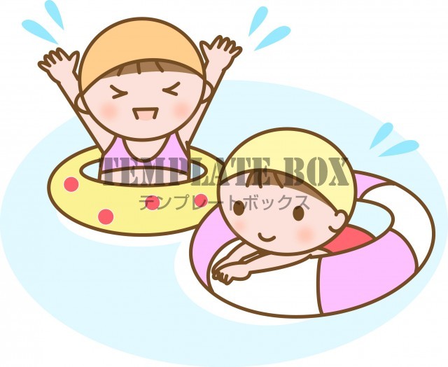 浮き輪で泳ぐかわいい女の子の無料イラスト 海プール46621素材Good。