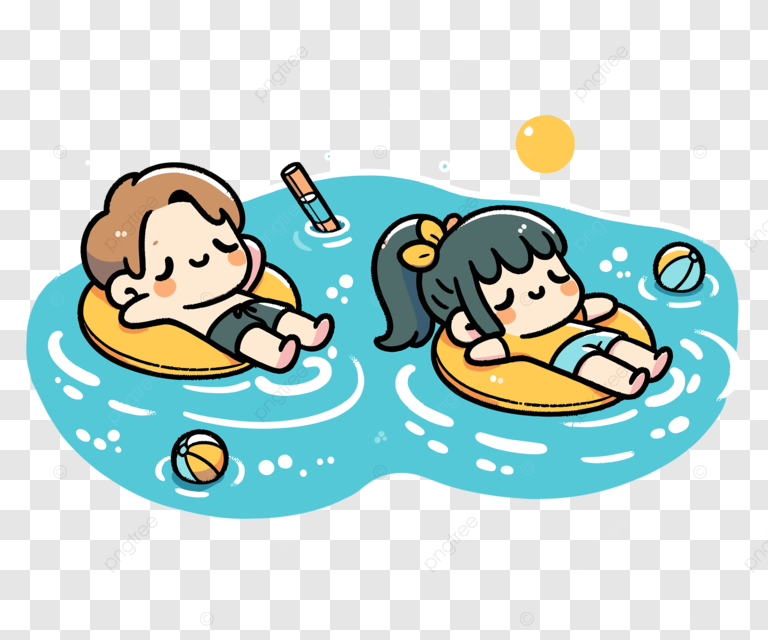 幸せなカップル漫画かわいい夏のスイミング プール ビーチイラスト素材透過、PNGフリー画像ダウンロード - Pngtree。