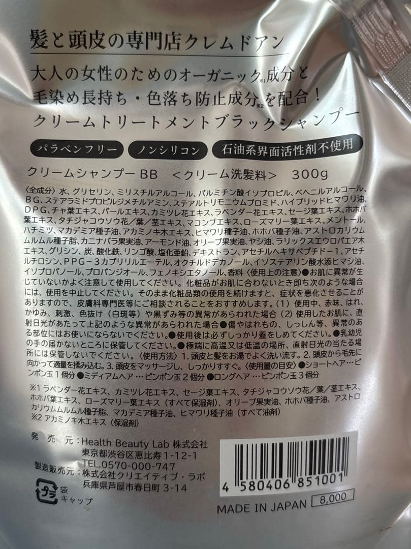 新品未使用 クレムドアン ブラックシャンプー 口コミ悪い? クレムドアンブラッククリームシャンプーは白髪に。