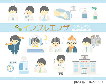 インフルエンザの男性 予防と対策 イラストセットのイラスト素材46273534- PIXTA。