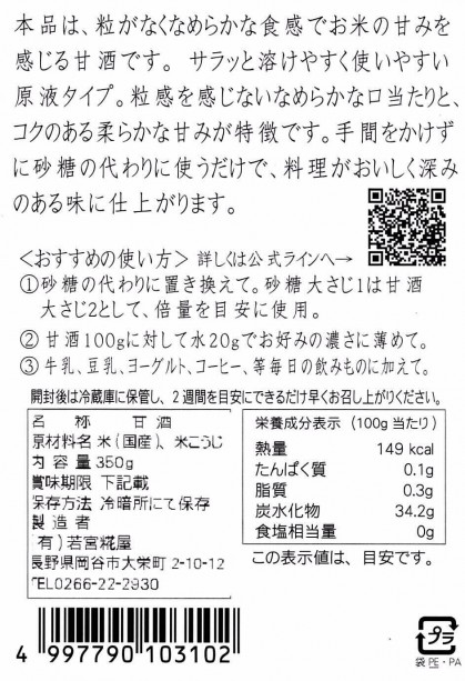 甘酒 糖度50度 稲垣美甘酒300g 無添加 米麹 おすすめ 美容 調味料。