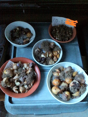 5月下旬にチューリップの球根 を掘り上げました。風通しの良いところで乾燥させたので、秋まで保管します。ほとんどが小さく、秋に植えても花はつかないと思います。こちらは球根 育成枠で育て、新たな球根を購入し花をなかみな。