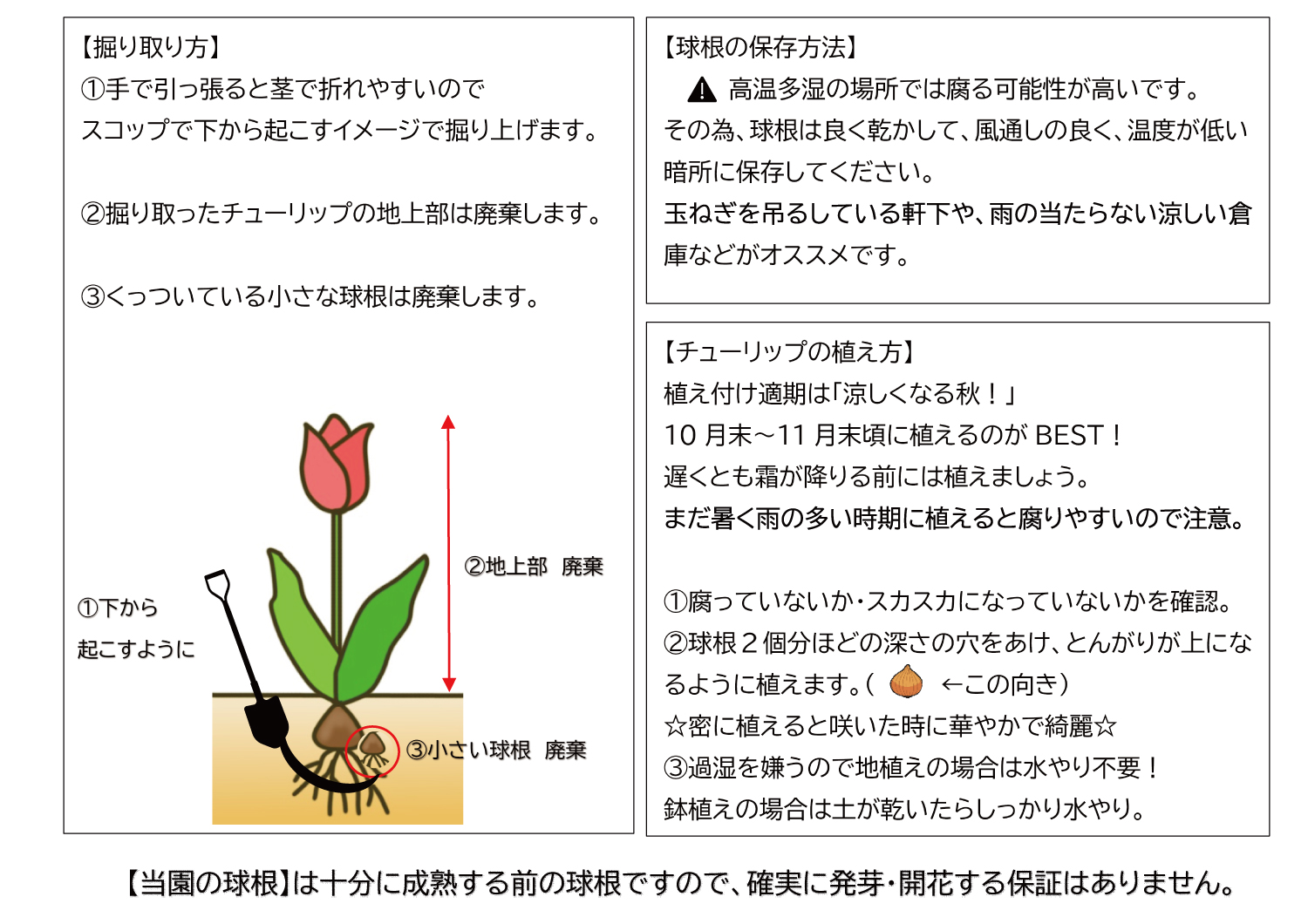 プロが教えるチューリップ球根の掘上げ方についてコラム富山県花卉球根農業協同組合WEBショップ。