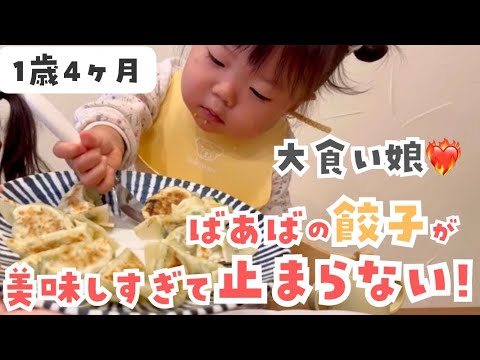 爆食い 1歳4ヶ月 ばあば直伝餃子を大食い!絶対見てほしい。