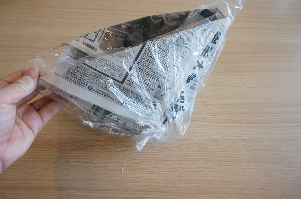 身近なもので防災対策!ポリ袋と新聞紙・ペットボトルを使った食器の作り方ポリ袋・ゴミ袋のサニパック。