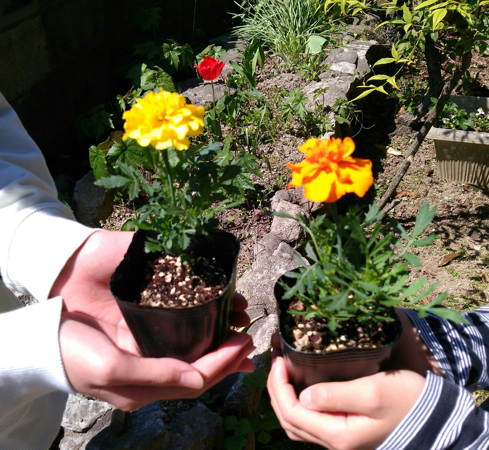 初心者の園芸。庭にマリーゴールド、プランターでトマト・きゅうりを植えてみた。リビングえひめWeb。