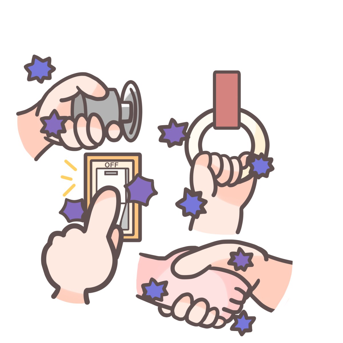 空気・飛沫・接触の3つの感染経路を表したイラスト🎨 フリー素材 看護roo! カンゴルー。