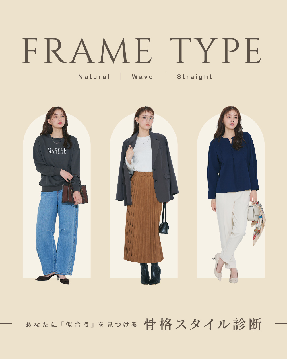 骨格診断 ストレート・ウェーブ・ナチュラル 其々のミックスタイプ骨格 診断とパーソナルカラーで、50代女性の人生を「仕切り直す」おしゃれ50代からの仕切り直しは、賢い投資で未来に残るおしゃれを。