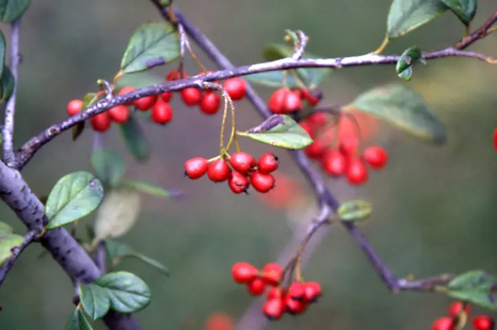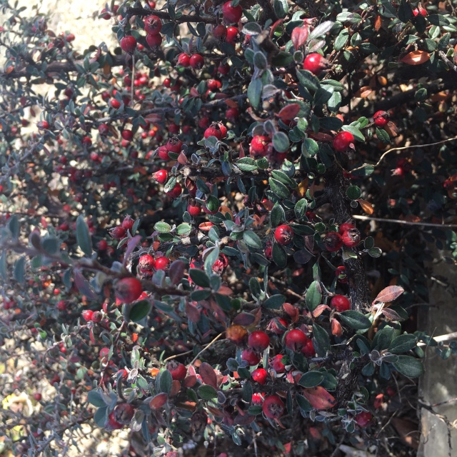 紅い実のなる木「コトネアスター・グラウコフィラス」。