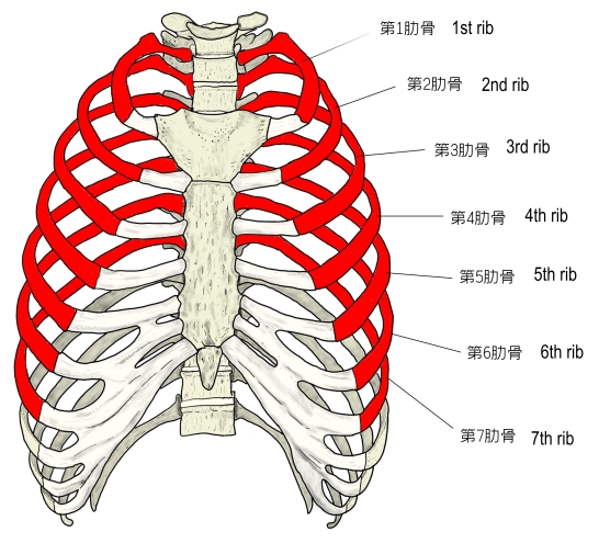 全身の骨格 - 肋骨・胸骨 - 名古屋市西区の椎間板ヘルニア・腰痛整体 AandK Therapy Studio。