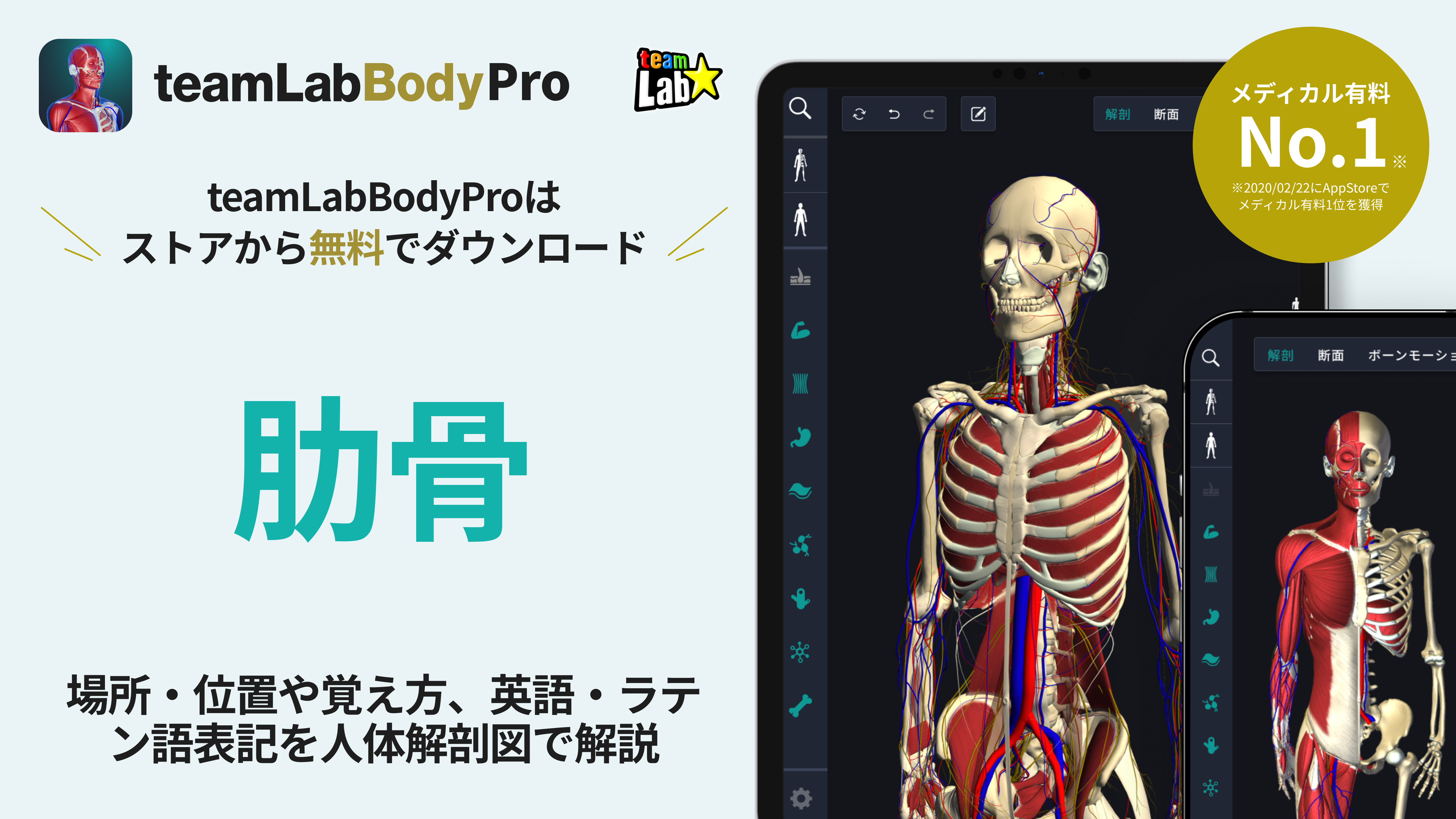 肋骨 ろっこつ とは?場所・位置や英語などを人体解剖図で解説 - teamLabBody。