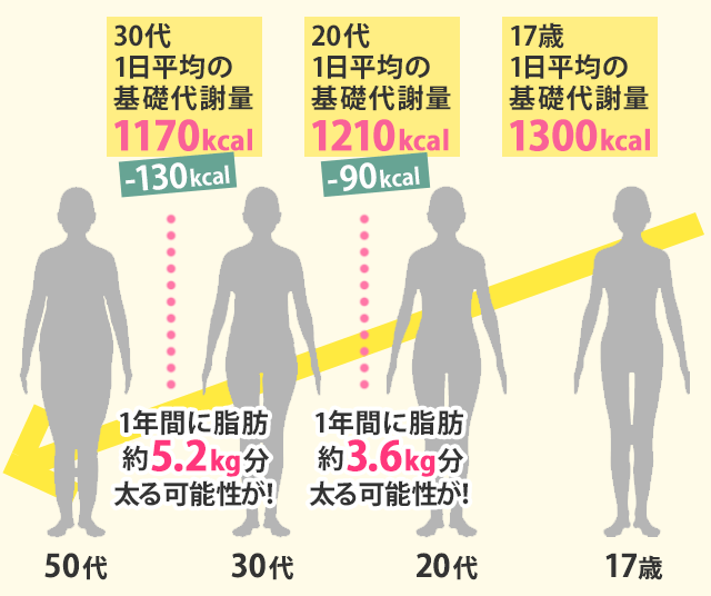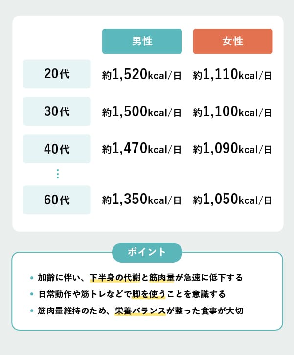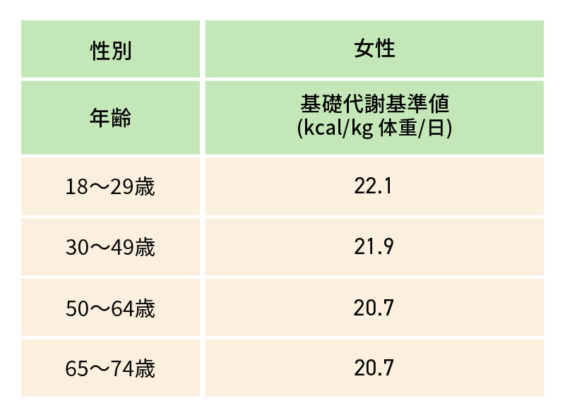 基礎代謝とは?上げるにはどうすれば良い?年齢別の目安や下がる原因を解説未来献立®︎ コラム味の素株式会社。