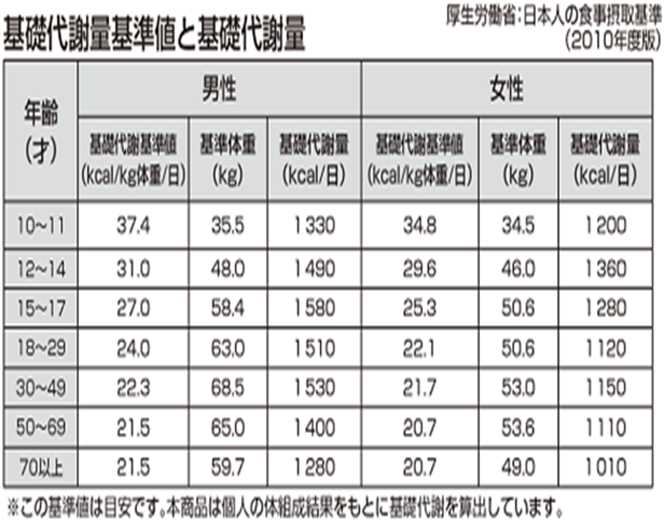 基礎代謝量の平均値を教えてください。 – よくあるご質問お客様サポートタニタ。