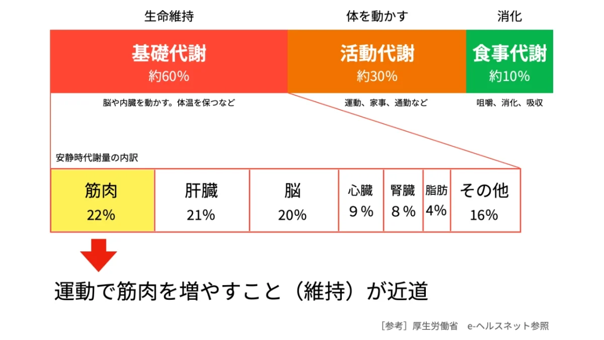 やせよう!と思ったら、まずやっておきたい体の環境整備。 何もしなくても消費される「基礎代謝」を上げると、食事管理の成果も出やすい「やせやすい」体になります。 基礎代謝と言えば、よく「筋肉量アップ」が取り上げられますが、 それ以上に大きな影響があるのが。