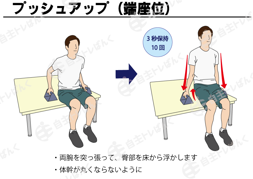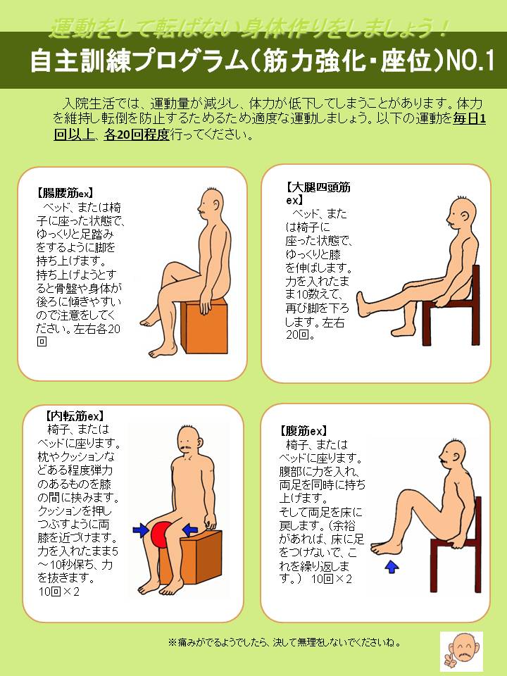 座位自主トレばんく 筋トレ・ストレッチ・リハビリのイラスト資料。