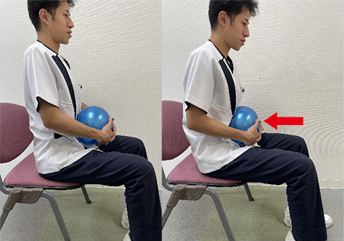 体幹捻じり運動 座位自主トレばんく 筋トレ・ストレッチ・リハビリのイラスト資料。