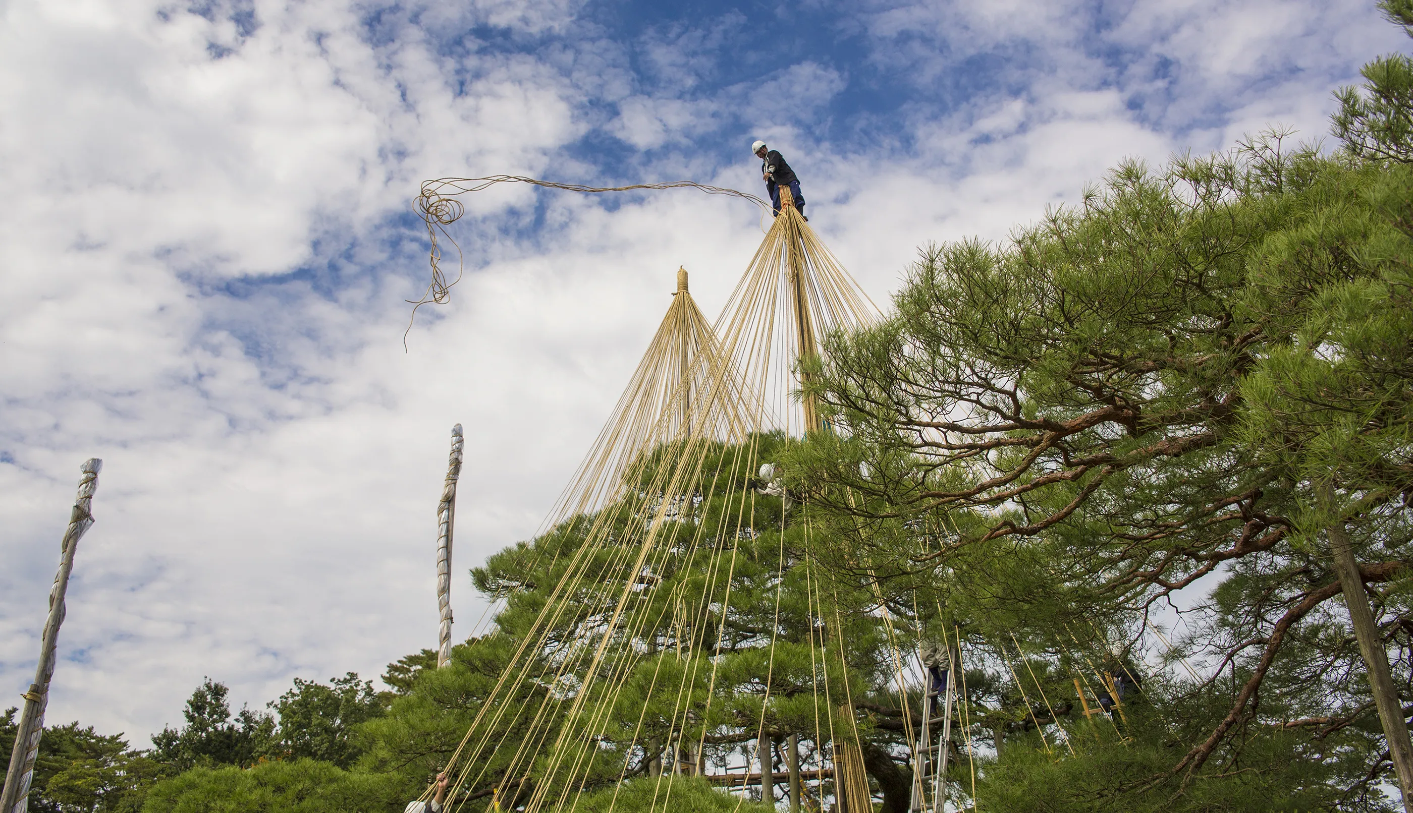 冬の風物詩 兼六園の雪つり作業始まる冬を迎える準備本格化。