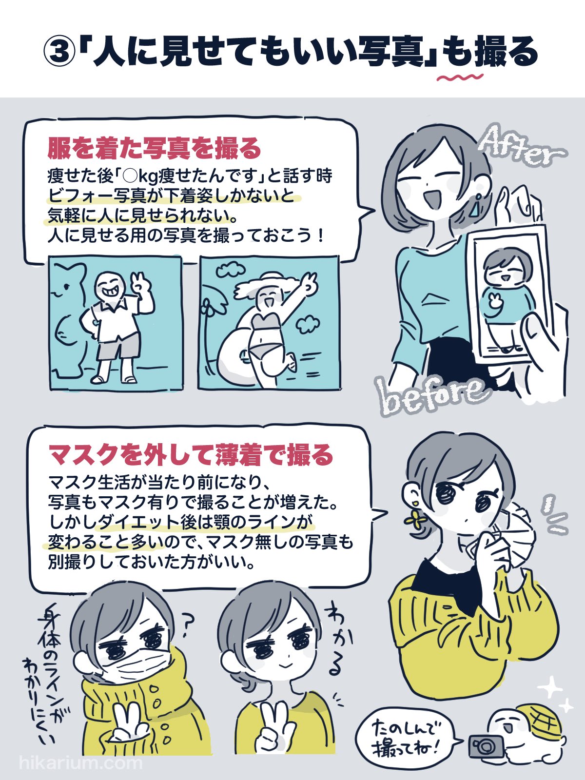 ヒカリビタミン🍋関西コミティア74 F50on X: " ビフォーアフター写真の撮り方ダイエットの前後に撮りたい比較写真。現実は見たくないけど、記録は今しかできない。その撮り方のポイントを3枚にまとめました!https:t.co dF5qUolcLf"X。