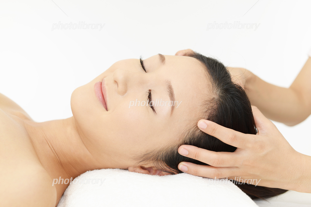 エステサロンでヘッドマッサージを受ける女性の写真素材207299556 毎月1点無料 フリー のストックフォト イメージマート。