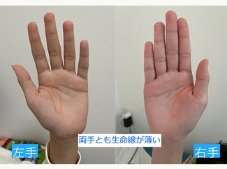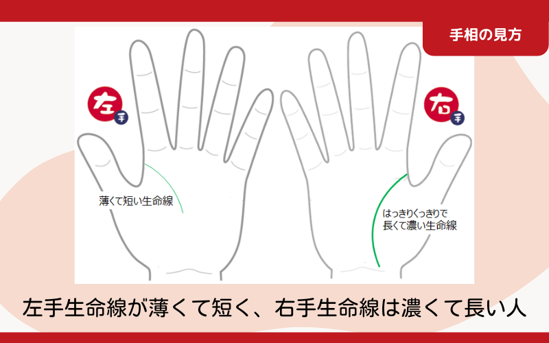 左手生命線が薄くて短く、右手生命線は濃くて長い人は、ONとOFFの差がある人手相観ぱなせ。