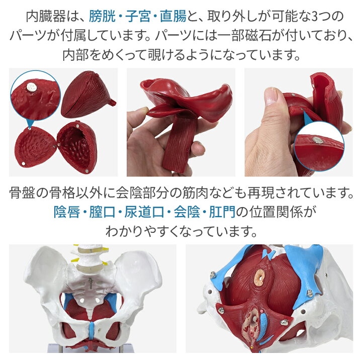 楽天市場衝撃の99%クーポン配信中☆14日20時〜先着実物大 骨格模型 女性骨盤模型 1 1サイズ 取り外し可能 膣内筋肉 膀胱 底筋 生殖器子宮 直腸 陰唇 膣口 尿道口 会陰 骨盤底筋模型 台座 スタンド付き 骨盤模型 骨盤 骨格 脊髄 椎間板 神経 学校 教材 医療現場。