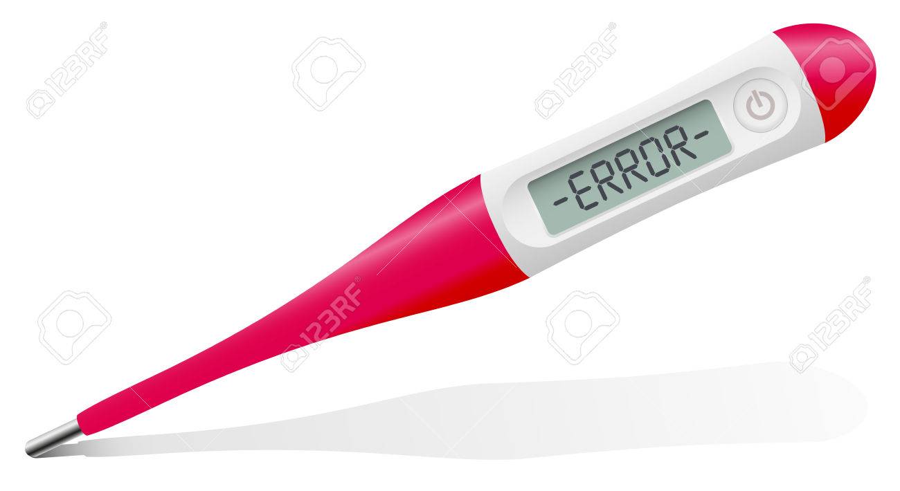 デジタル温度計 - 表示は、健康上の問題や医療制度の問題の象徴としてエラー - を言います。白の背景にベクトル画像を分離しました。のイラスト素材・ベクターImage 39055483。