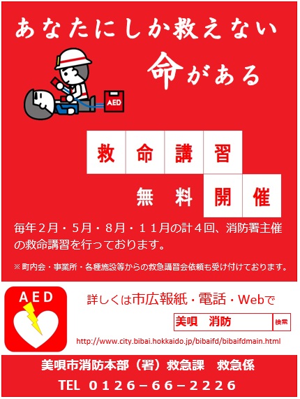 救急法等講習会の実施について - 根室振興局保健環境部保健行政室。