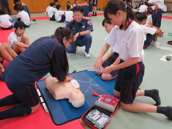 高校1年 救急救命講習会智辯学園中学校・高等学校。