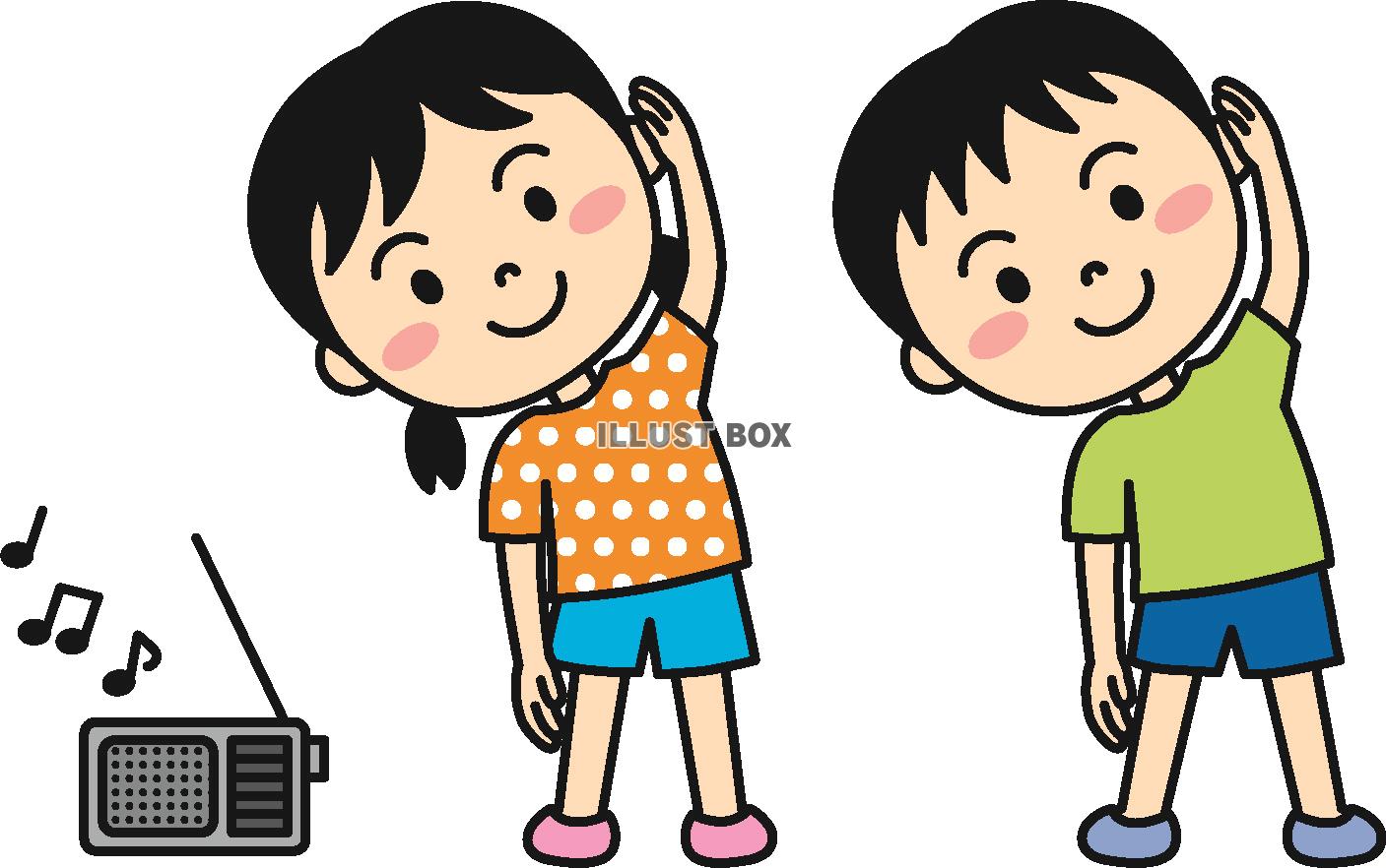 無料イラストラジオ体操する子供パブリックドメインQ:著作権フリー画像素材集。