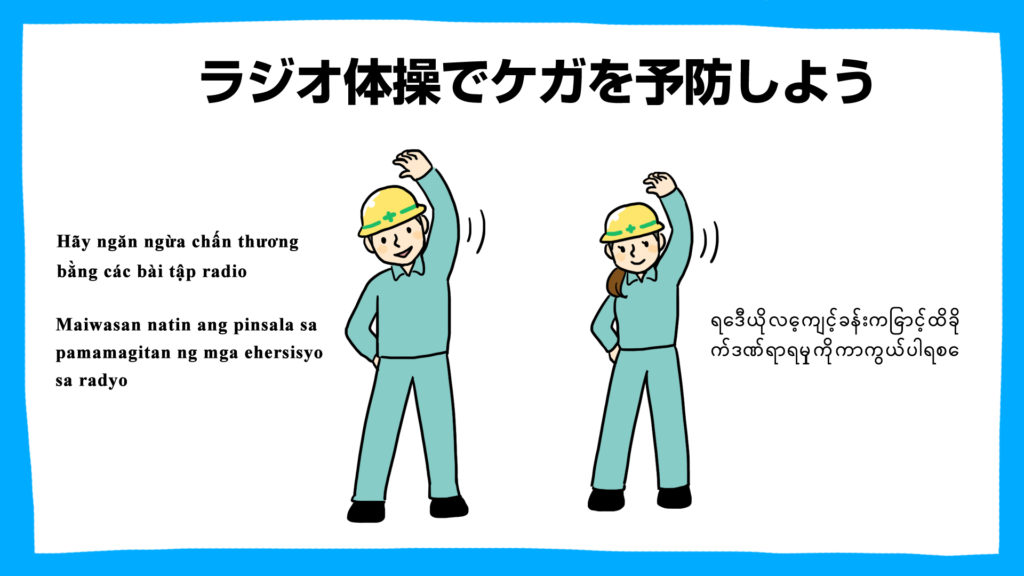 ラジオ体操でケガを予防しましょう - 建設現場・工事現場のポスター ・イラスト 無料 フリー ダウンロードサイト。
