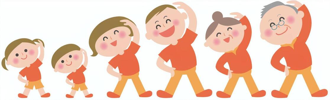 ラジオ体操 家族イラストなら、小学校・幼稚園向け・保育園向けのかわいい無料イラストお試しフリー素材 カット がいっぱいの安心サイトへどうぞ。