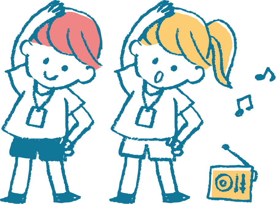夏休み ラジオ体操イラストなら、小学校・幼稚園向け・保育園向けのかわいい無料イラストお試しフリー素材 カット がいっぱいの安心サイトへどうぞ。