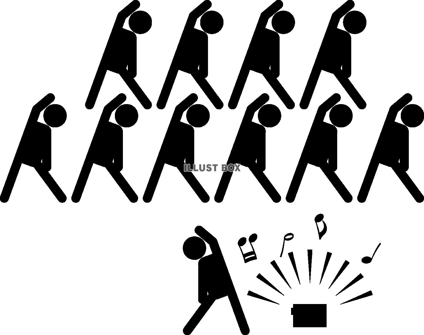 みんなでラジオ体操をする人々 ピクトグラム:イラスト無料。
