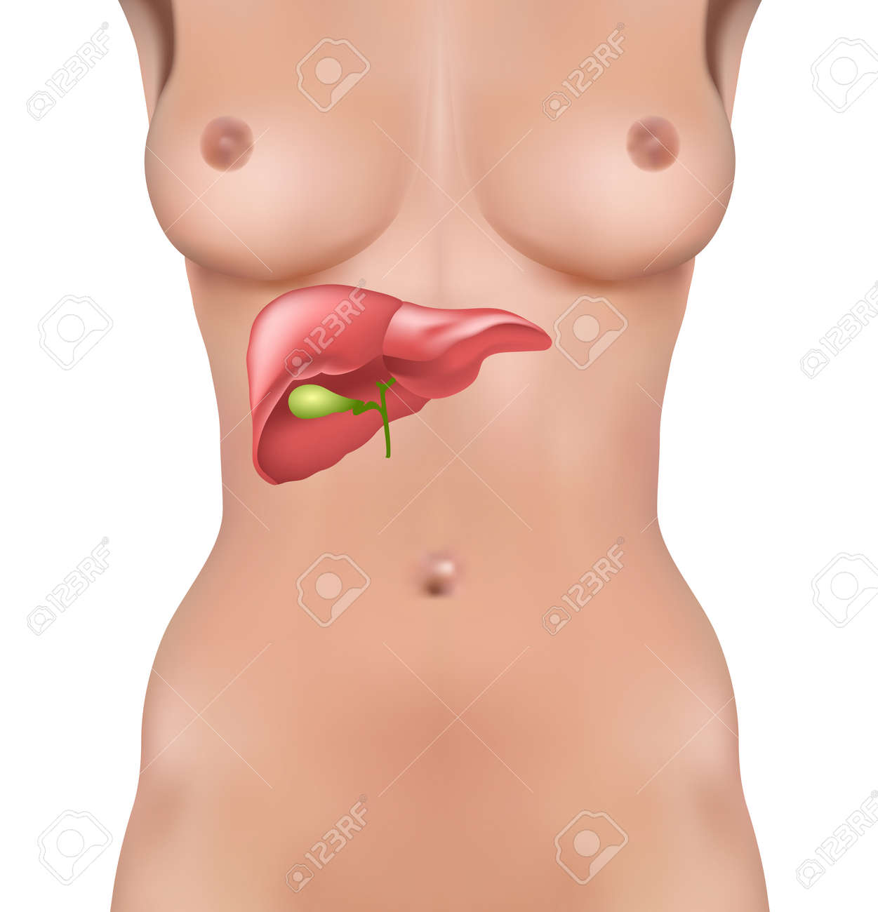 体内の肝臓の位置、人間の消化器系。女の子の臓器の解剖学のイラスト素材・ベクター Image 124746752。