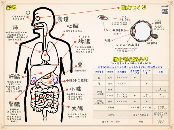 中学理科生物の解説。人体や目の仕組み、臓器や消化酵素の働きがわかるテストつきプリント「第二の家」ブログ藤沢市の個別指導塾のお話。