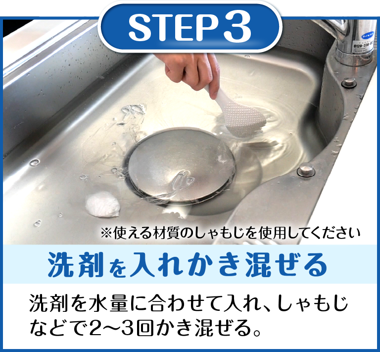 つけおき洗剤 シンクへの水の溜め方 – 株式会社ウエ・ルコ。