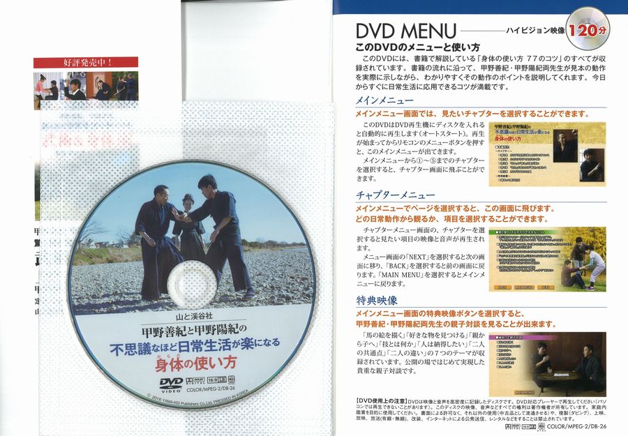 甲野善紀と甲野陽紀の不思議なほど日常生活が楽になる身体の使い方 DVD映像120分 日常動作を磨く77のコツ山と溪谷社。