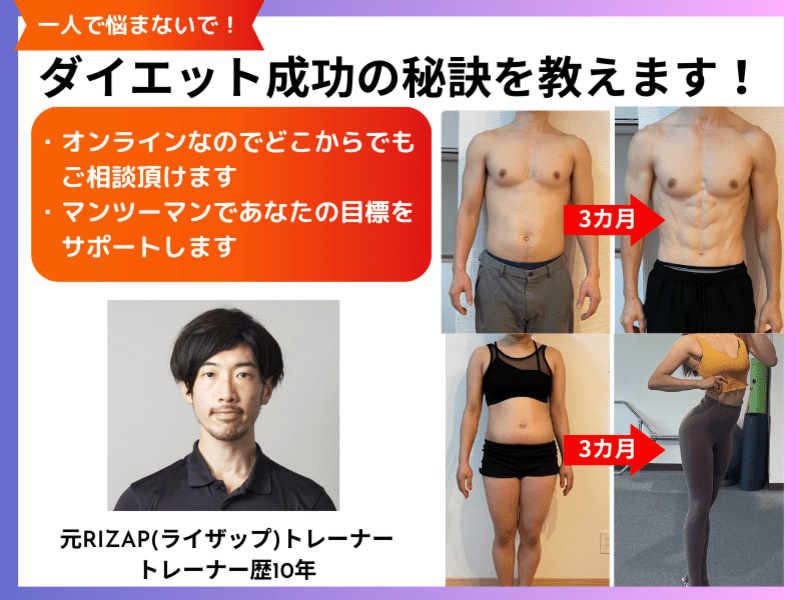 ダイエット成功例② 1ヶ月間のオンラインダイエットプログラム パーソナルトレーナー 原田 直生coconalaブログ。