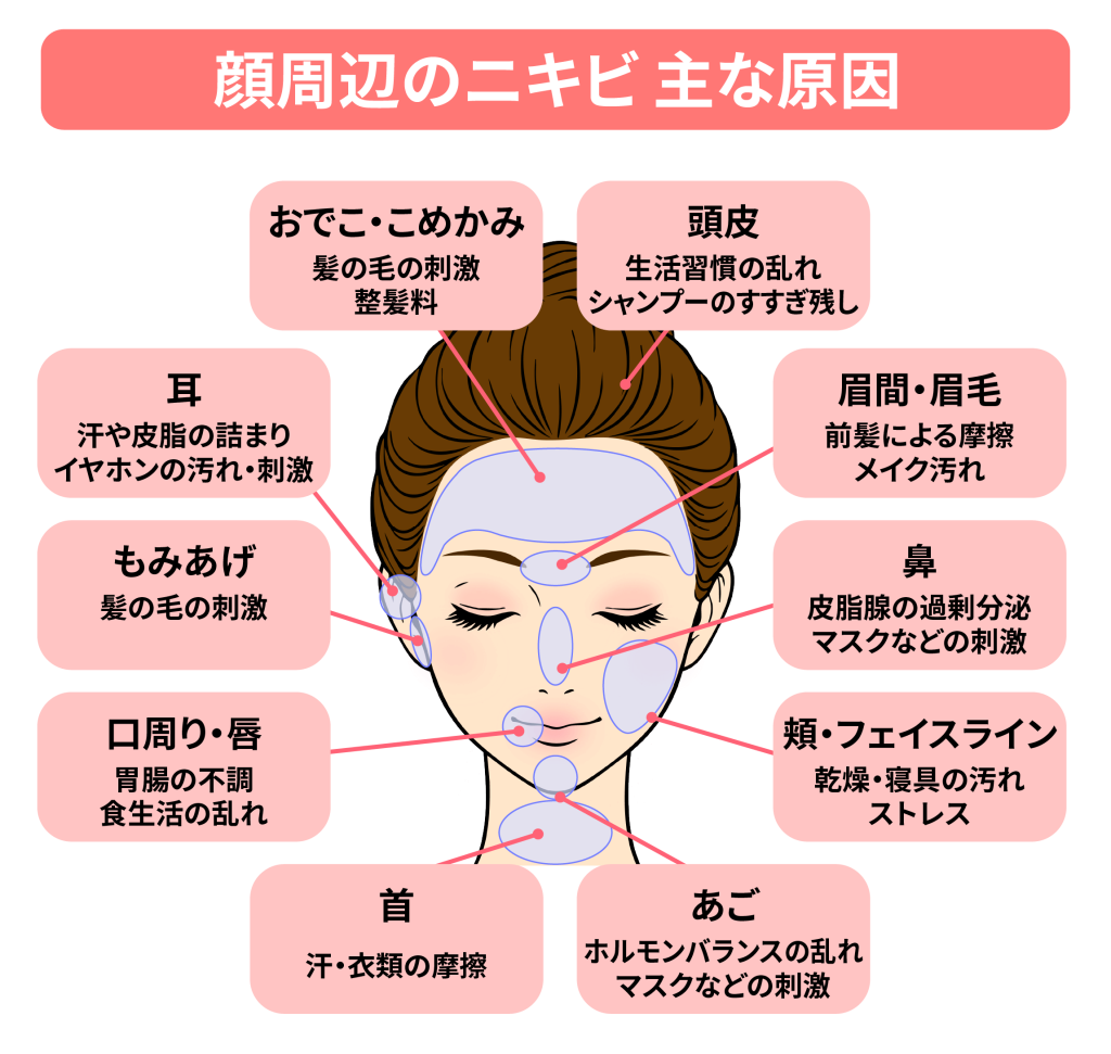 ニキビができる場所によって原因は違う?場所ごとのニキビ対策についても解説えいご皮フ科奈良・京都・大阪・四日市・尼崎。