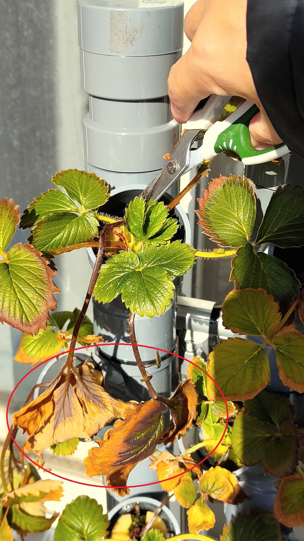 イチゴの枯葉取りを行いましたたかはしさんのDIYで水耕栽培&園芸ブログ。