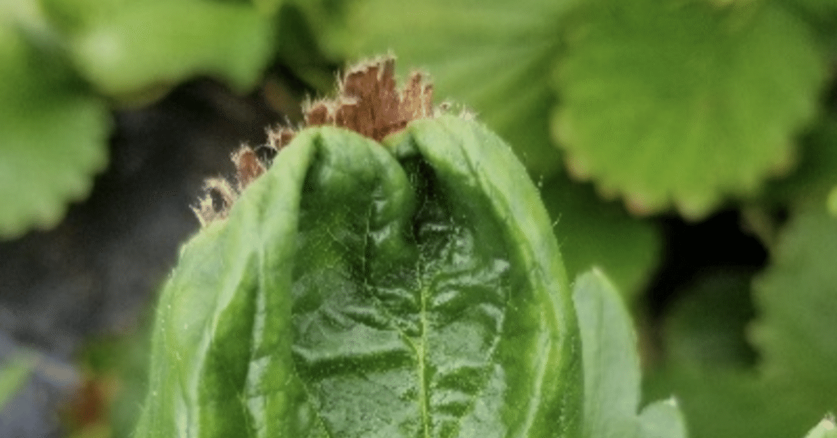いちご葉先が枯れたらカルシウム不足?チップバーンミライ菜園。