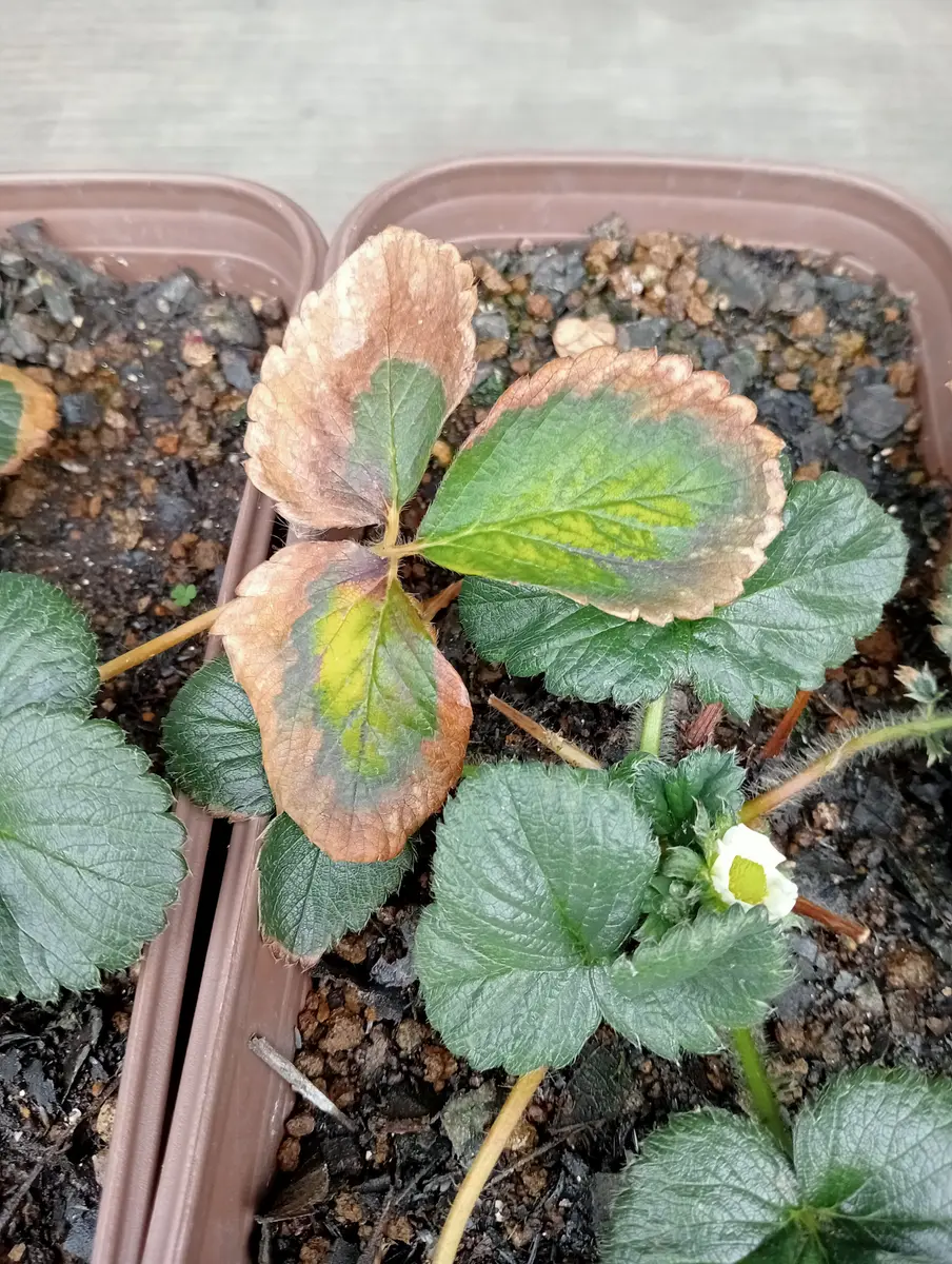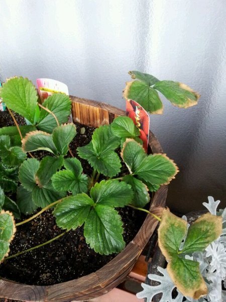 いちごの葉っぱの周りが茶色くなっています。 - マンションのベランダで- Yahoo!知恵袋。