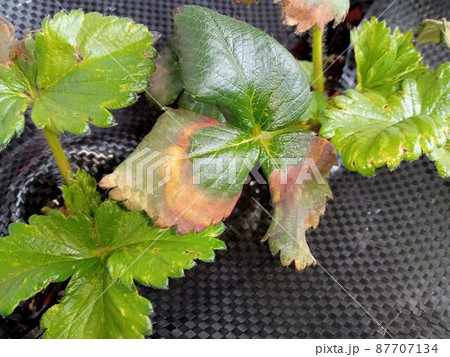 不自然な枯れ方。肥料焼けしたイチゴの葉っぱの写真素材87707133- PIXTA。